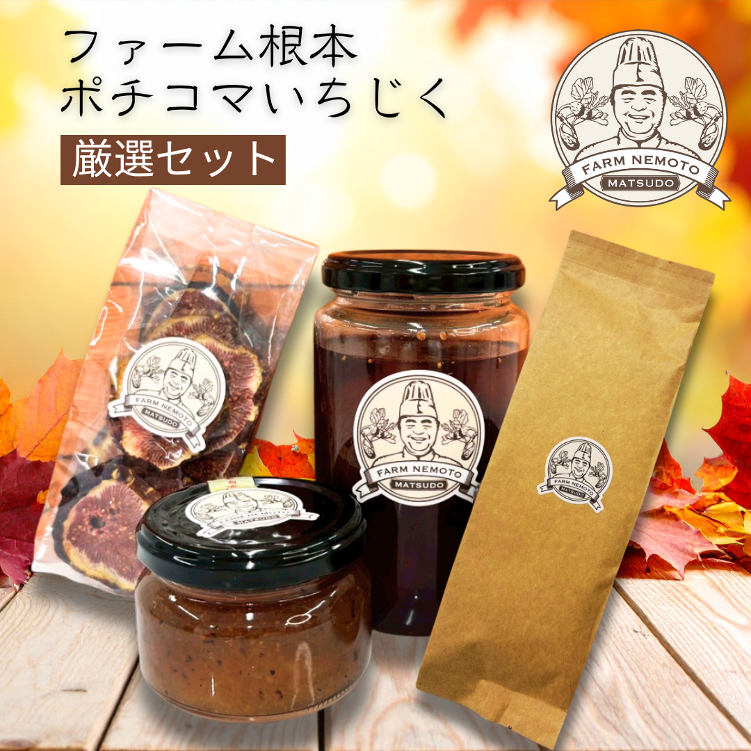 ファーム根本のいちじくスイーツ4点セット(ジャム、コンポート、ドライ、いちじく葉茶)