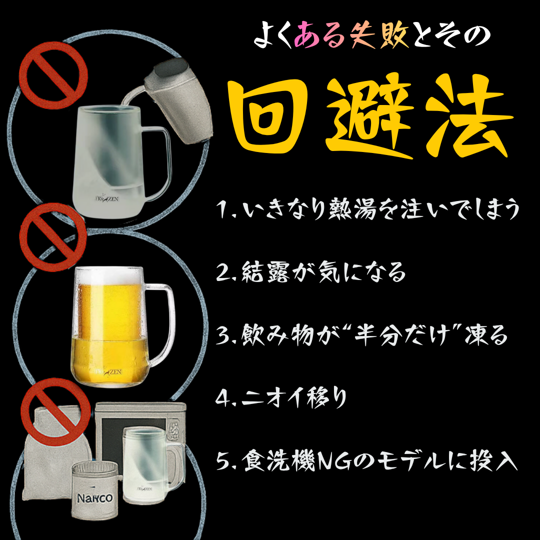 1. いきなり熱湯を注いでしまう:冷凍直後は常温に少し戻す/高温飲料は推奨モデルのみ使用。
