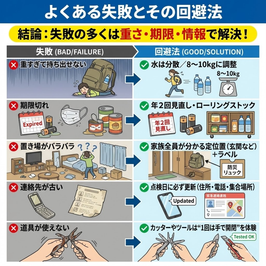 結論:失敗の多くは重さ・期限・情報で解決できます。