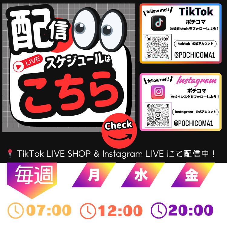 「ポチコマ」は TikTok LIVE & Instagram LIVE で好評配信中!エンタメ全開で“おいしい・たのしい・すぐ買える”体験をお届けします。フォローして次回のライブをお見逃しなく👀