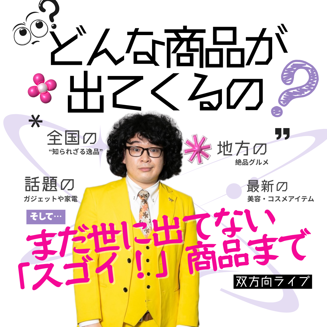 まず、紹介される商品ラインナップも盛りだくさん。朝・昼の配信で好評だった全国の隠れた逸品グルメや最新コスメ、話題のガジェットや家電など、夜の部でもワクワクするような多彩な商品が登場予定です。「こんな物まで!?」というまだ世に出ていない掘り出し物が飛び出すことも…!?